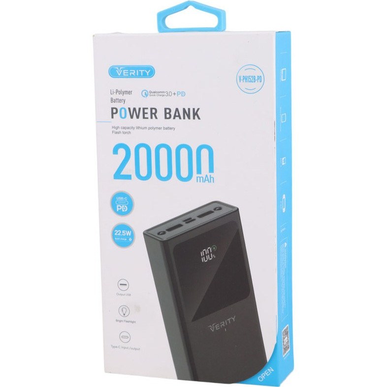 پاوربانک وریتی مدل V-PH152W-PD ظرفیت ۲۰۰۰۰ میلی آمپر فست شارژ